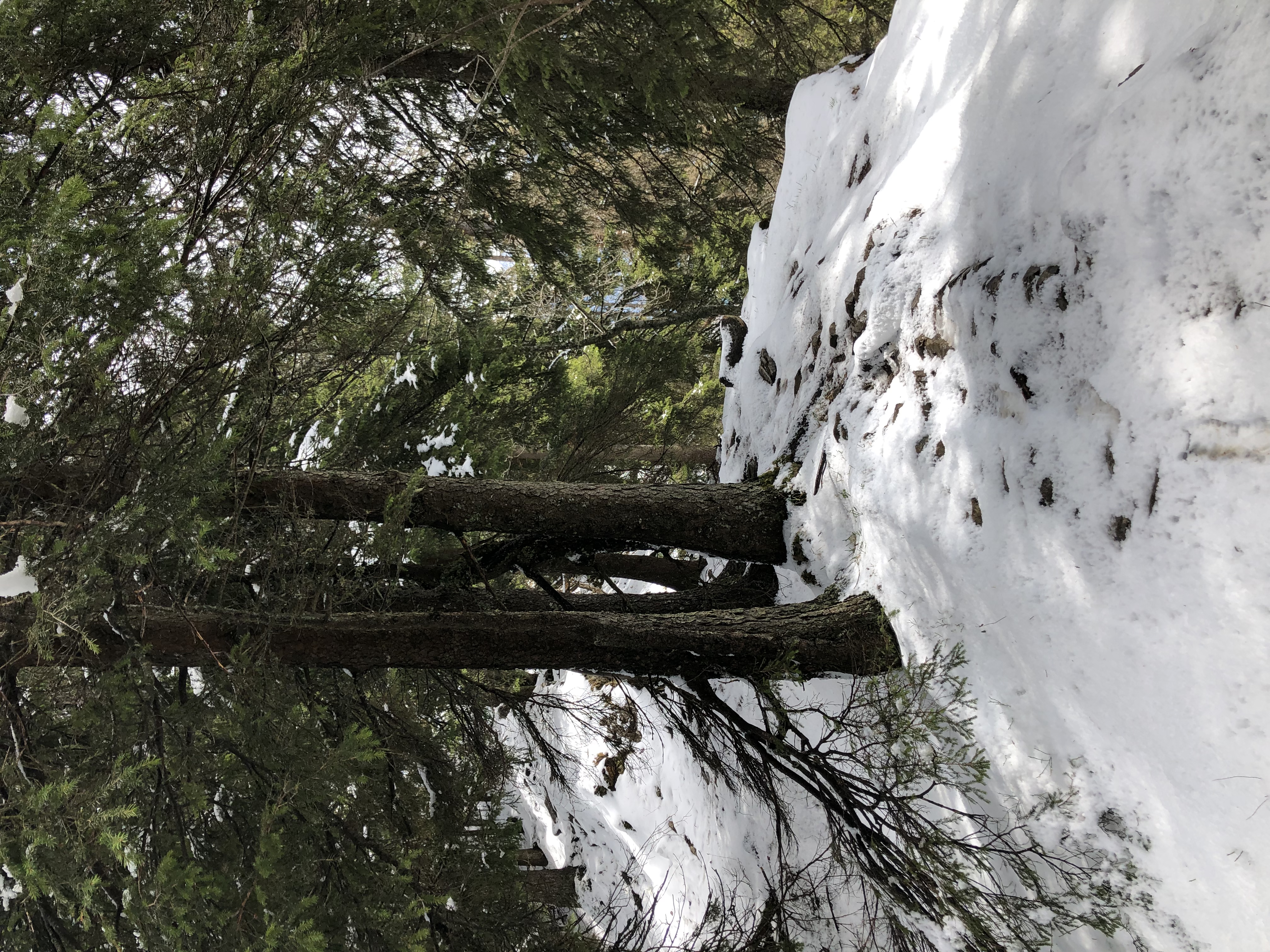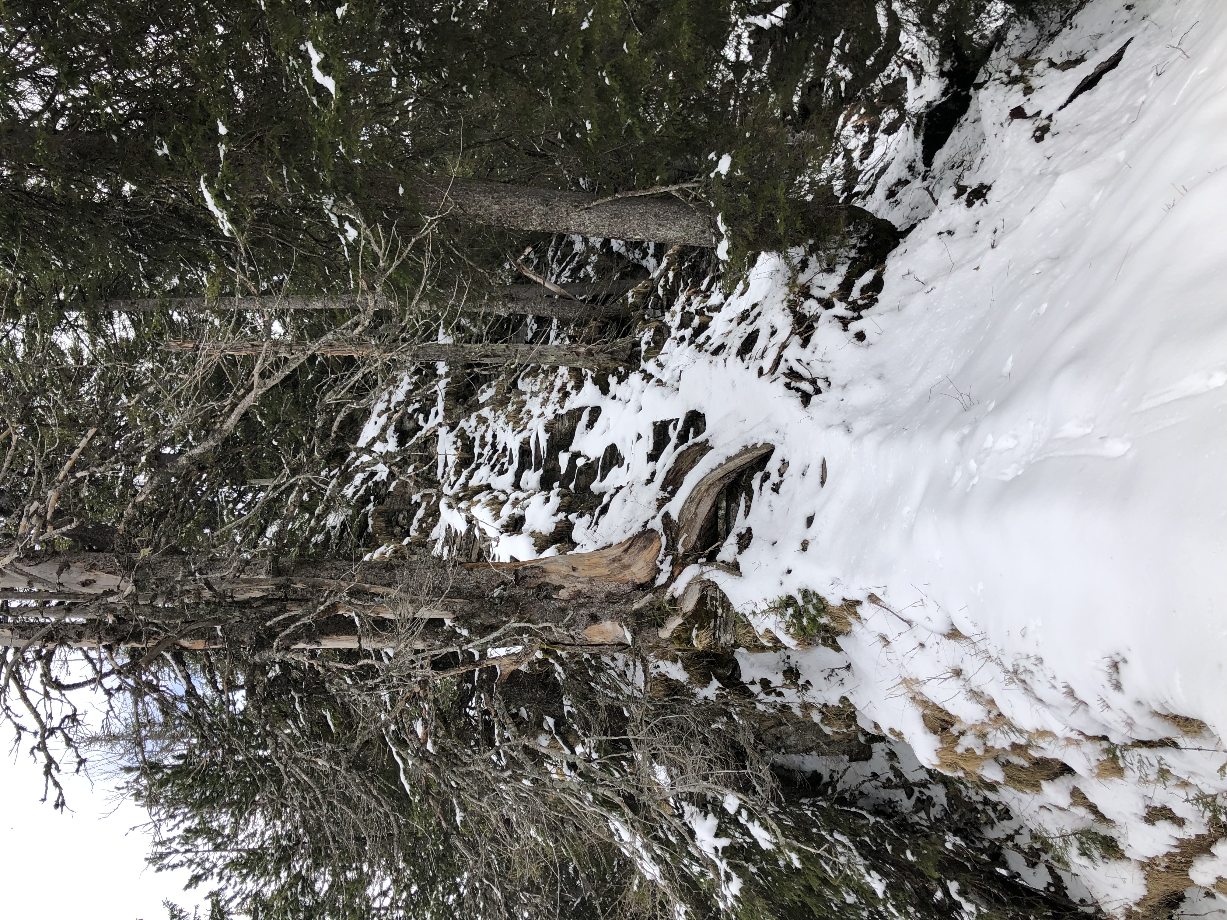 Die Wanderung war dann etwas abenteuerlich, da auf dem Grat noch Schnee lag und es ziemlich matschig und rutschig war. Ausserdem war der Weg recht steil und links und rechts des Pfads ging’s tief hinunter. Weiterhin musste ich einige umgestürzte Bäume überwinden…